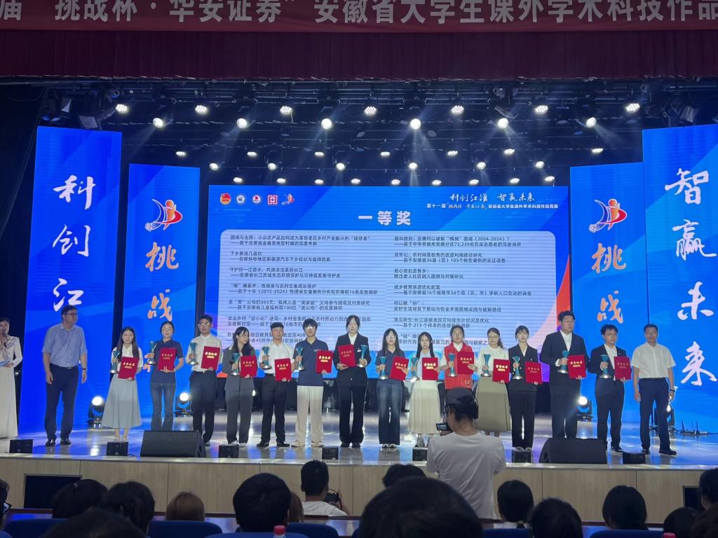 6月10日- 12日,由共青团安徽省委、安徽省教育厅、安徽省社会科学院、安徽省科学技术协会、安徽省学生联合会联合主办的第十一届“挑战杯・华安证券”安徽省大学生课外学术科技作品竞赛省级决赛在安徽财经大学圆满落幕。本次赛事吸引了全省108所高校、超过10 万名学生参赛,经过层层选拔,1165件作品参与角逐,最终 86 所高校的 350个项目入围省级决赛。