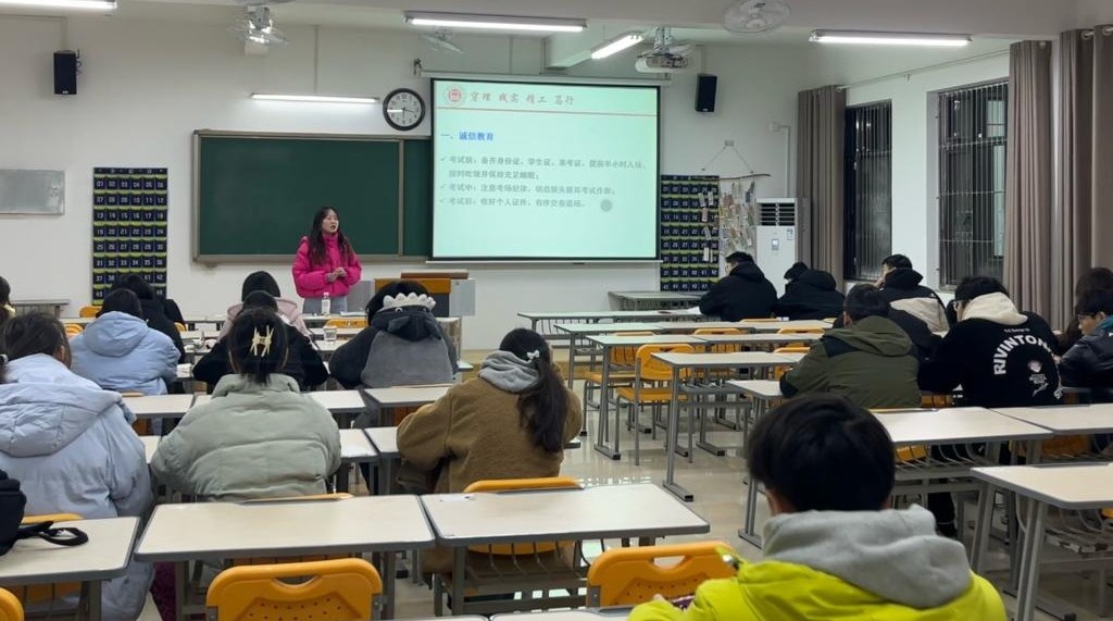 考风考纪是教育教学的生命线,关乎学院的学风建设和人才培养质量。学院高度重视考风考纪教育,通过多种方式加强诚信意识的培养。各班级召开了诚信考试主题班会,辅导员强调了考试纪律的严肃性,明确了考试违规行为的认定标准和处理办法,引导同学们树立正确的价值观,自觉遵守考试规则,以真实水平展现学习成果。此外,学院还通过发放诚信考试承诺书形式,营造了诚信考试的良好氛围。同学们纷纷表示,将严格遵守考试纪律,以诚信的态度迎接考试,展现学院学子的良好风貌。