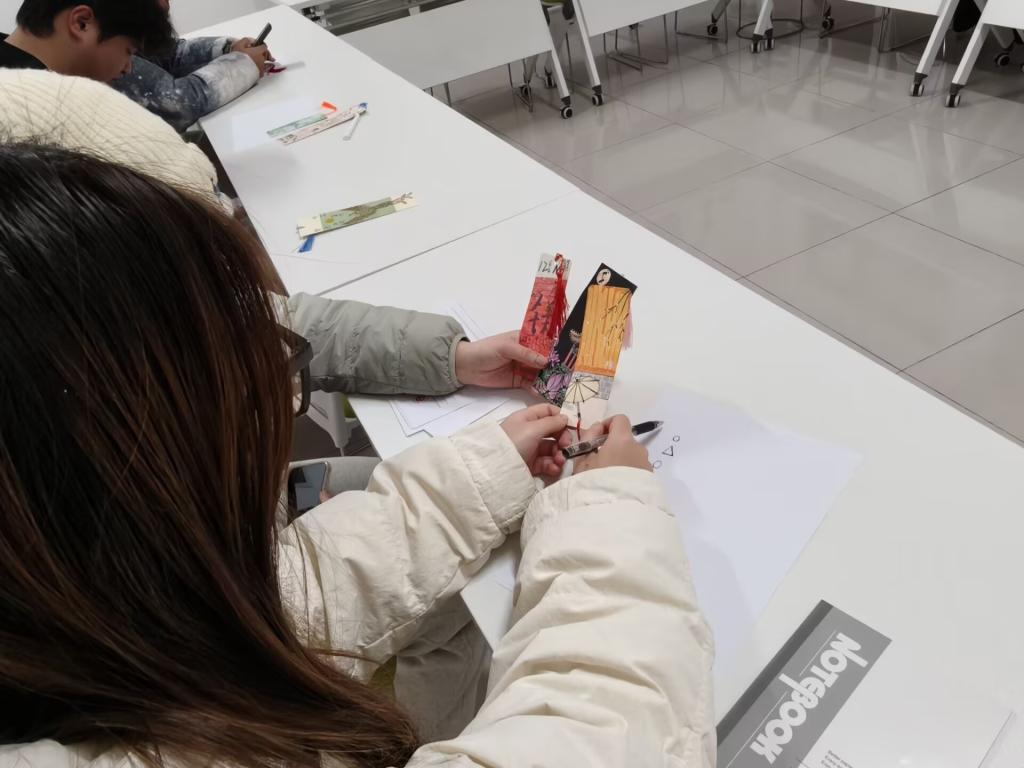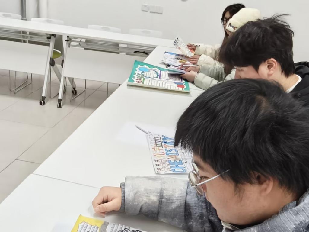 随后,活动进入核心环节。在创意书签制作环节,心理辅导员引导学子们将专业元素与成长期许相结合,亲手打造专属书签。大家或以彩笔绘制分子结构、电池模型等专业符号,或写下“深耕储能领域,逐光而行”“以化工严谨,解心理迷思”等激励话语,有的还点缀叶片、贴纸等装饰,让小小的书签既承载专业热爱,又饱含对未来的憧憬。学子们专注创作,将对化学竞赛的备战决心、人际相处的美好期待融入细节:“把目标写在书签上,翻开书本就能看见动力”“带着这份专属信物,愿能勇敢攻克科研难关”。学院将为学子妥善保管书签,待明年同期返还,见证成长路上的每一步坚守。